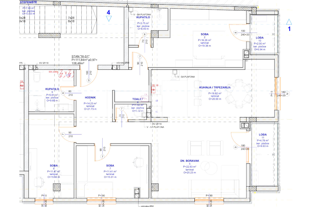 • Površina stana: 108,50 m²
