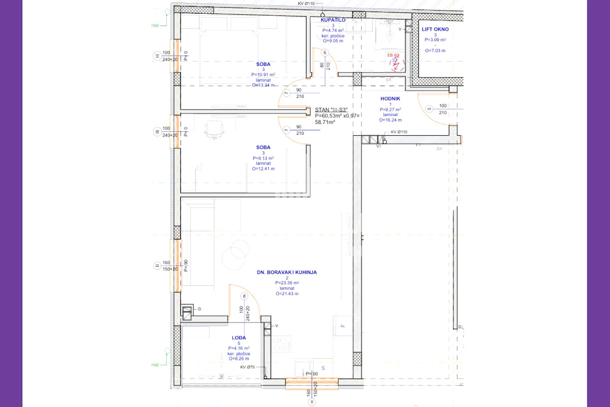 • Površina stana: 59 m²