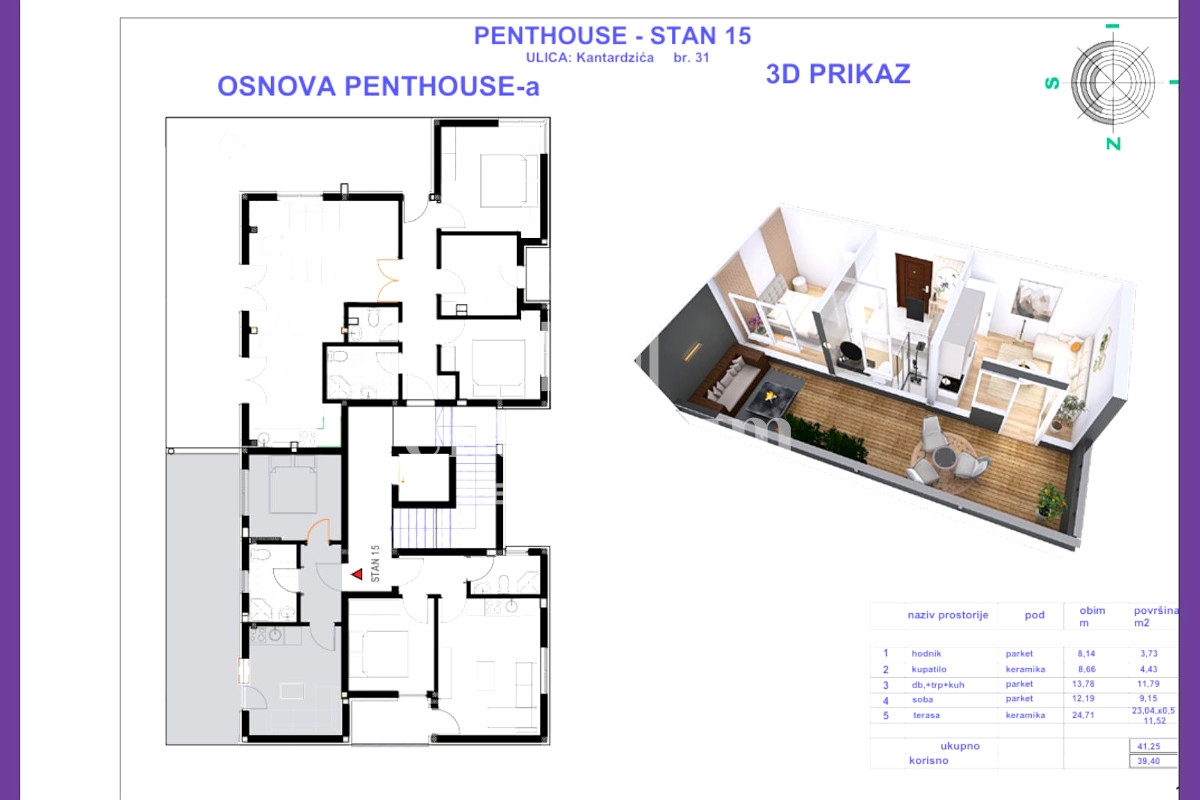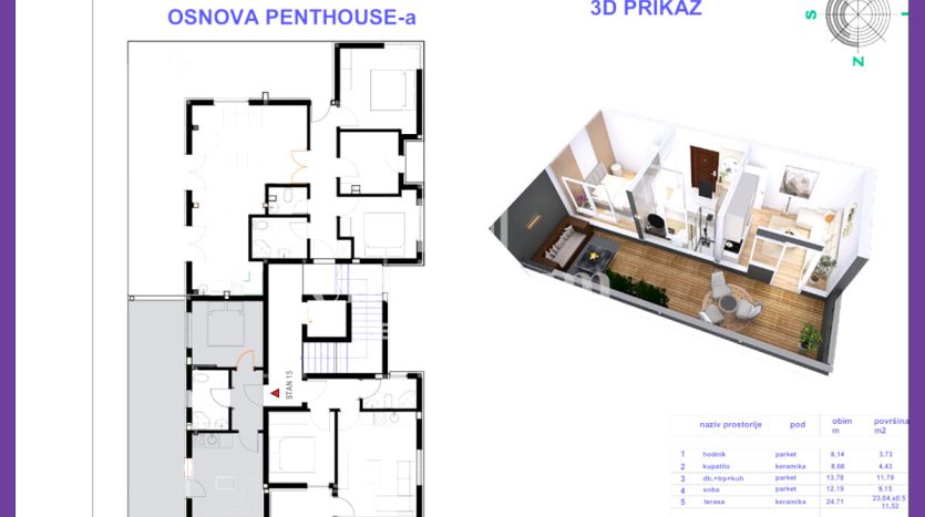 ✔ Penthouse – 39,50m² (jednoiposoban) – 118.500 KM.