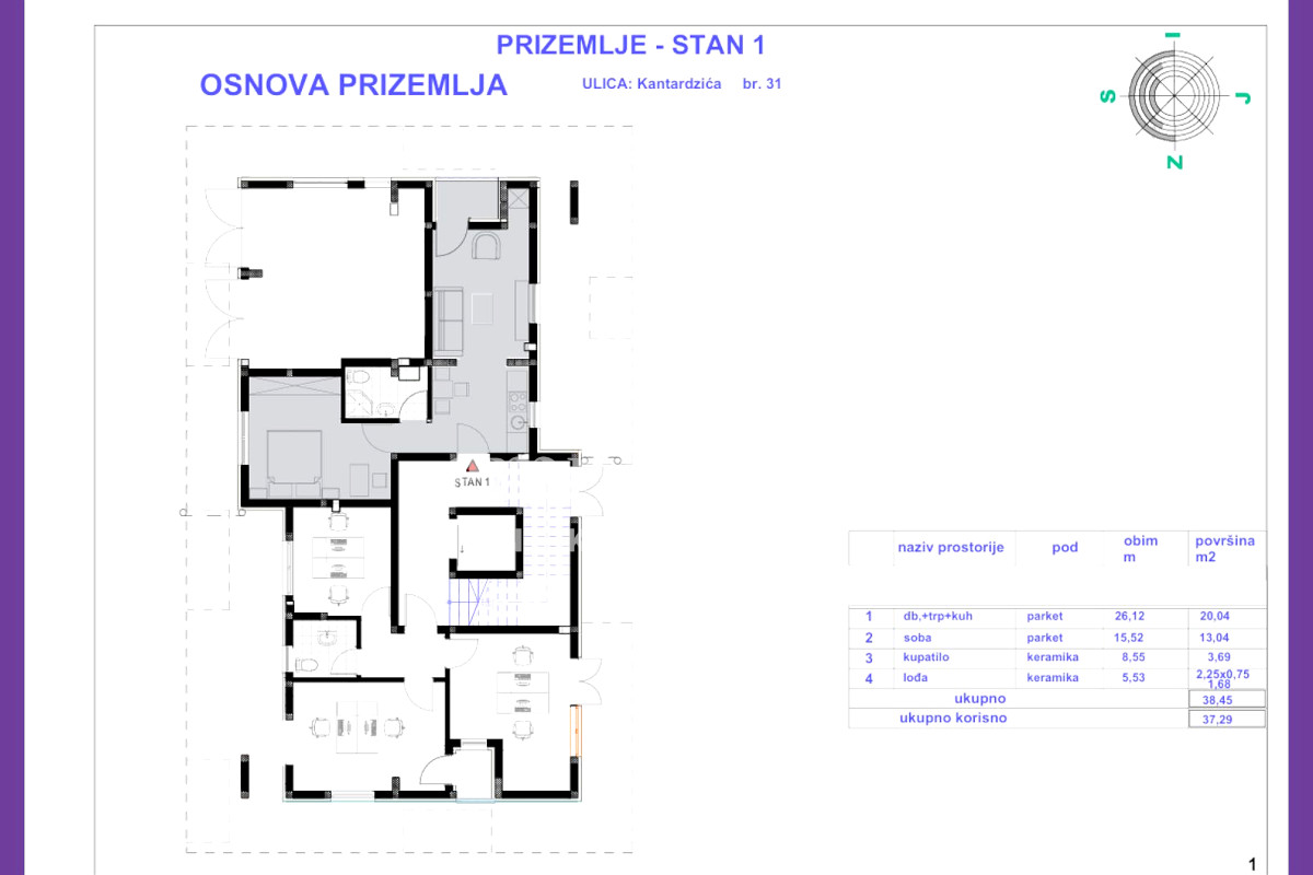 ✔ Prizemlje – 37,30m² (jednoiposoban) – 111.900 KM,