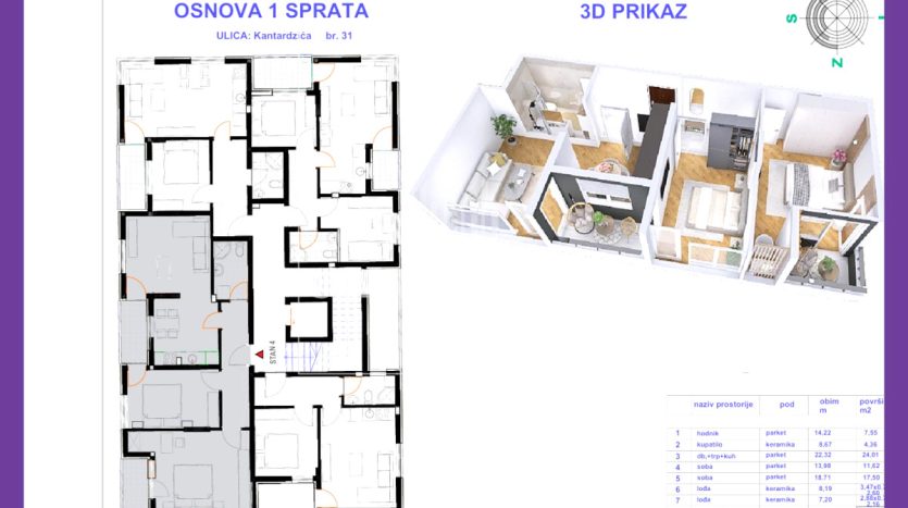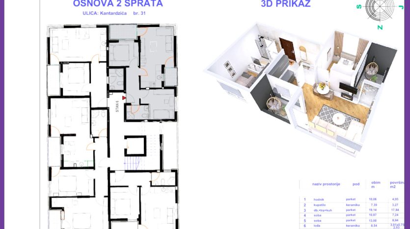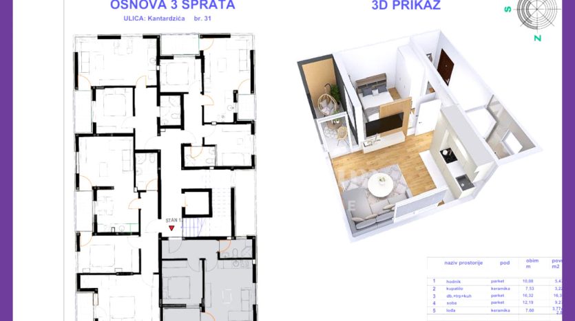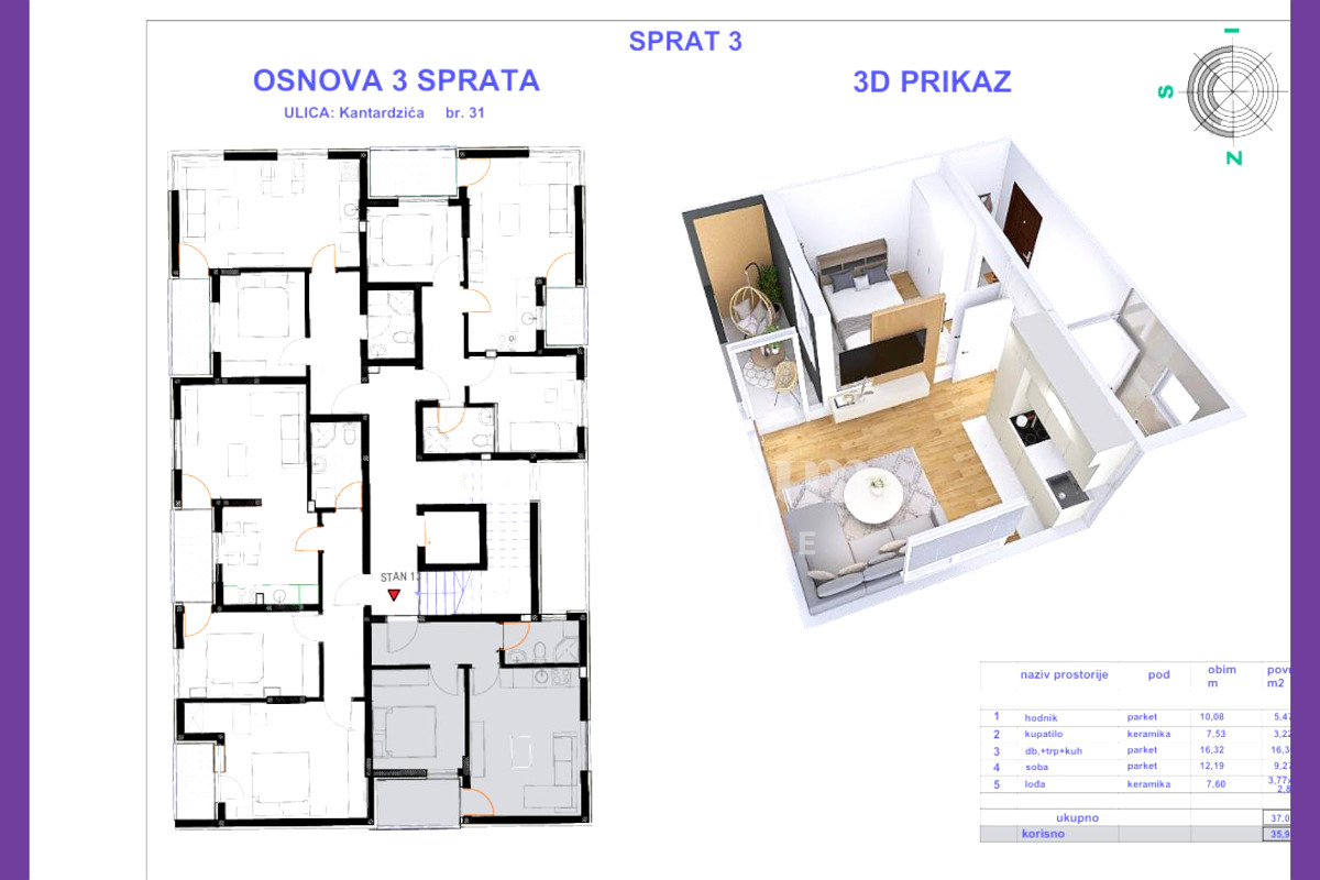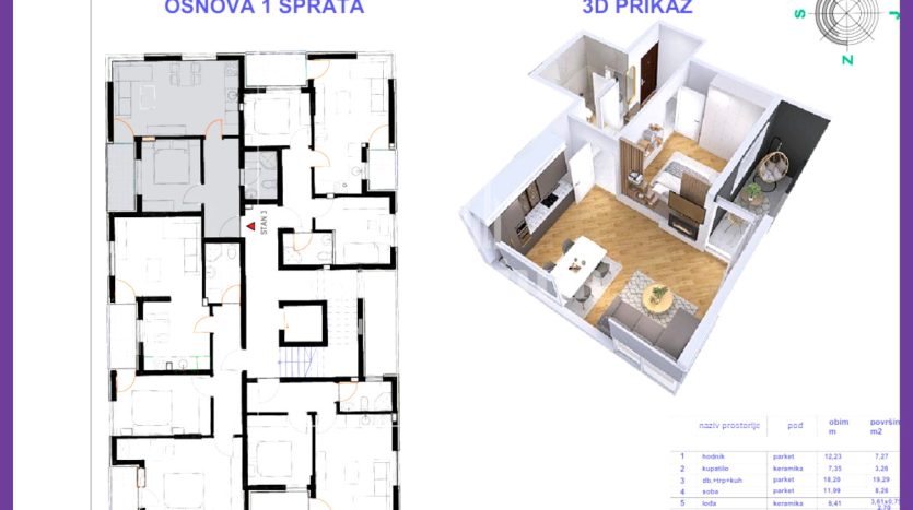 ✔ III sprat – 36,00m² (jednoiposoban) – 108.000 KM,